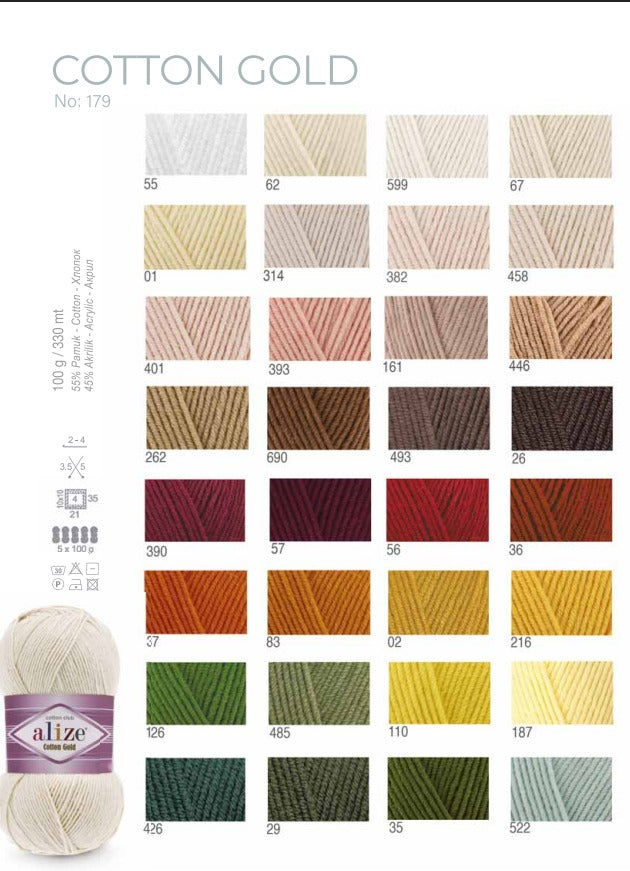 Med sin härliga färgpalett och slitstarka kvalitet är Cotton Gold ett favoritgarn bland både nybörjare och erfarna handarbetsentusiaster. Det noppar inte, trasslar inte, och ger ett jämnt och professionellt resultat varje gång.